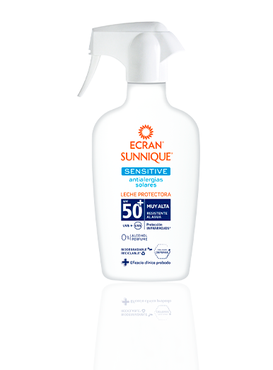 - Leche de protección solar en spray, especialmente indicada para pieles muy claras, sensibles o con intolerancias al sol