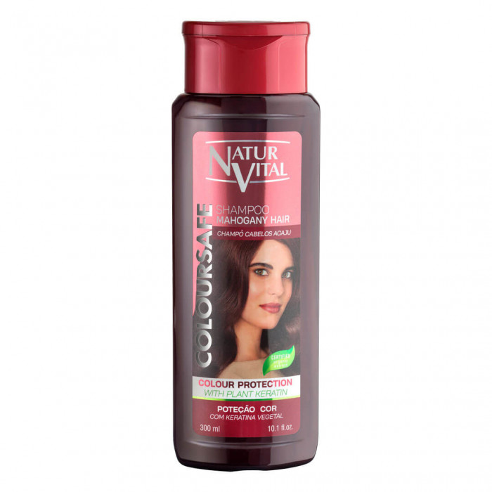 CHAMPU COLOURSAFE COLOR CAOBA de Natur Vital con alta compatibilidad dérmica, reaviva el color del cabello natural y teñido, a la vez que lo refuerza.