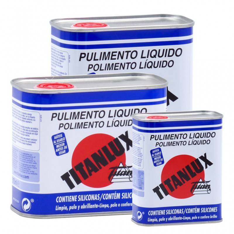 El pulimiento líquido Titanlux se utiliza para superficies esmaltadas, cromadas, plástico, cristales, etc., en automóviles, motos, muebles, electrodomésticos, etc. Renueva, limpia, pule, abrillanta y protege las superficies tratadas con el pulimento líquido Titanlux. Contiene Siliconas.